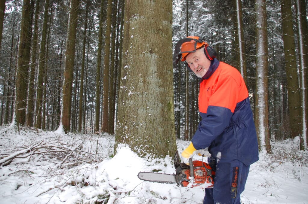 Henrik Korsholm går selv i skoven med motorsaven, når der skal skoves træer.