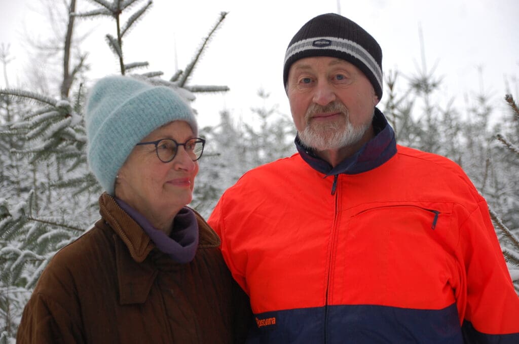 Astrid Jensen og Henrik Korsholm har siden 1991 forvaltet i alt 12 hektar skov, som har tilhørt Astrids slægt i generationer. De fælder træer til salg og fornyer skoven, når det kræves. Et felt med douglas og rødgran har de selv plantet for seks-syv år siden. Her ses de i den unge nåleskov